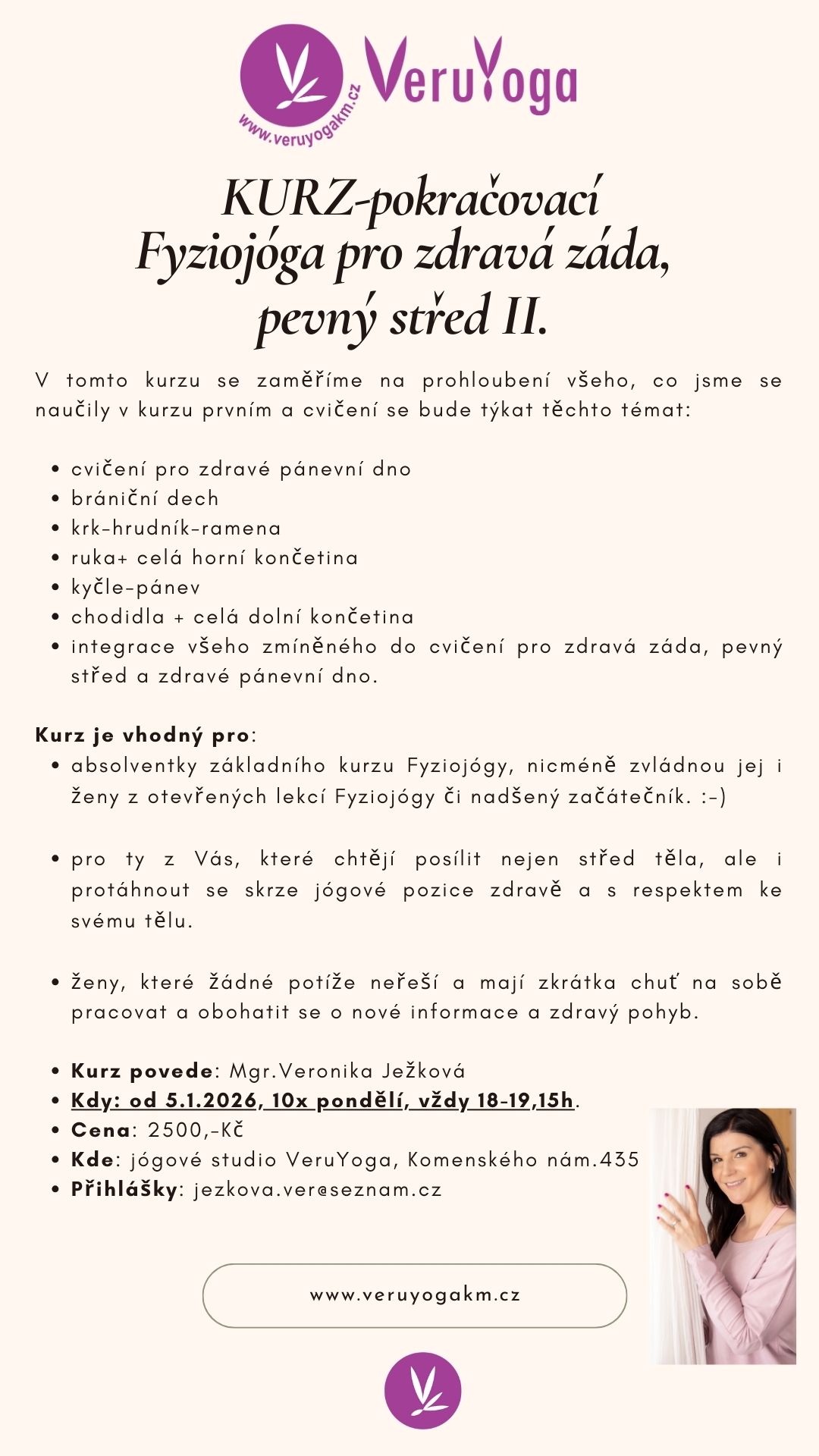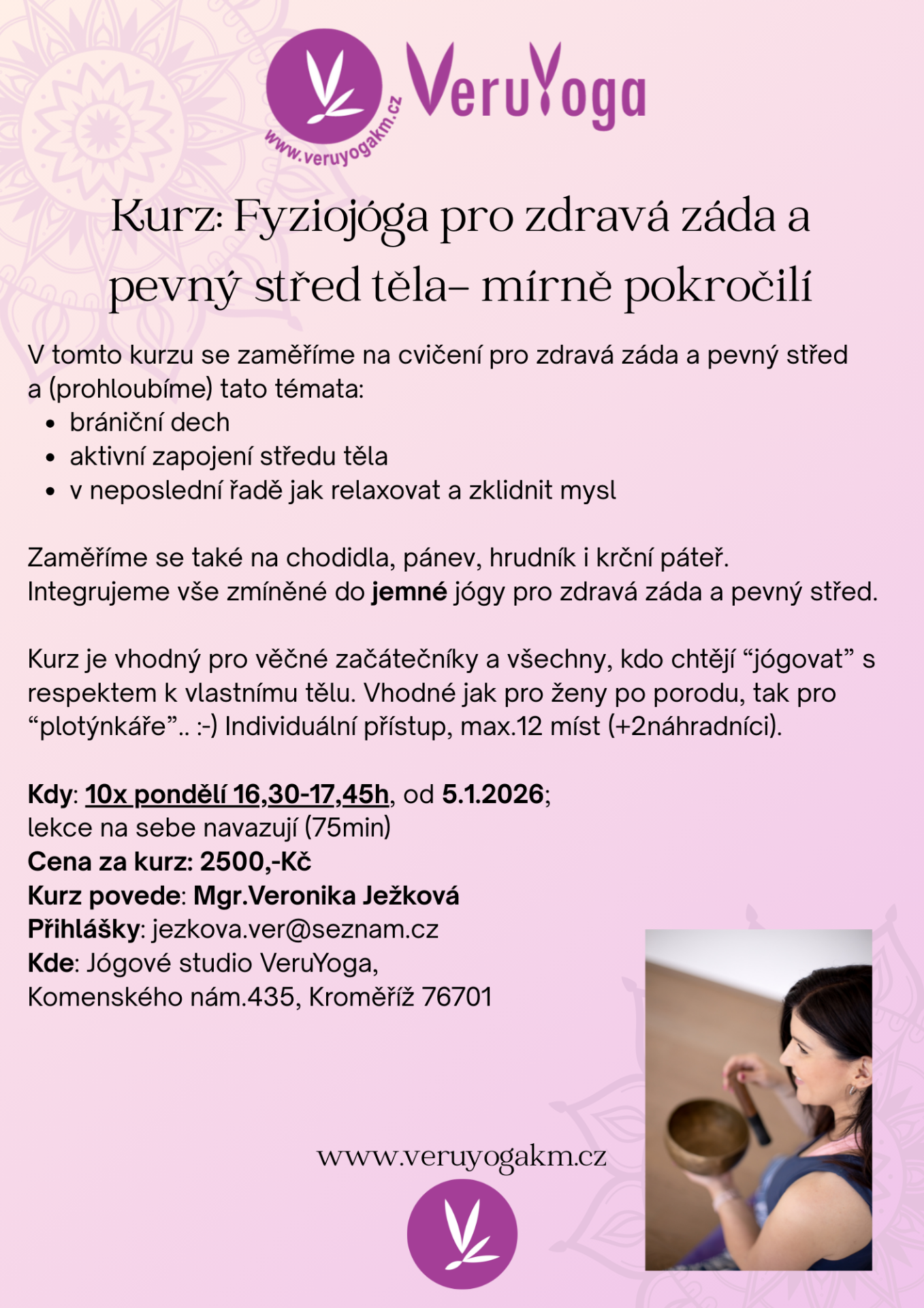 Kurz Fyziojóga pro zdravá záda, pevný střed-mérně pokročilí 2