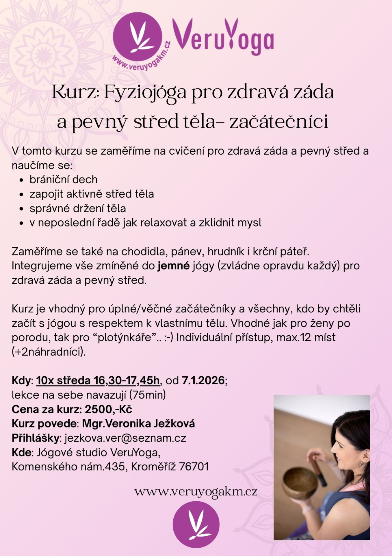 Kurz: Fyziojóga pro zdravá záda a pevný střed těla-ZAČÁTEČNÍCI